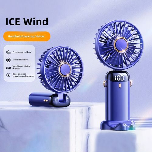 ICE Wind 3-in-1 Portable Fan - Handheld Desktop Halter Rechargeable Fan with 5-Speed Cooling, LED Display & Low Noise